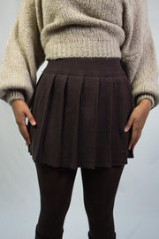 Add a playful yet chic touch to your wardrobe with this dark brown pleated mini skirt. Designed with a wide elastic waistband for comfort and a flattering fit, the structured pleats create beautiful volume and effortless movement. Pair it with a cozy knit or a sleek top for a versatile look that goes from casual to dressed-up with ease.